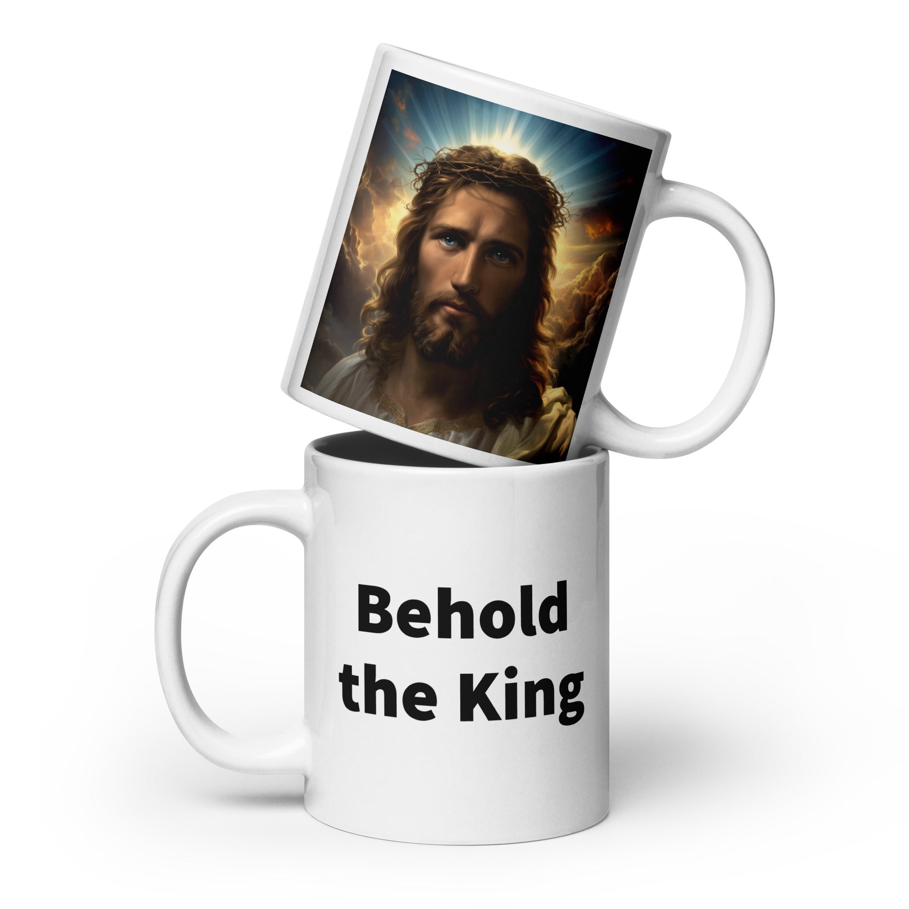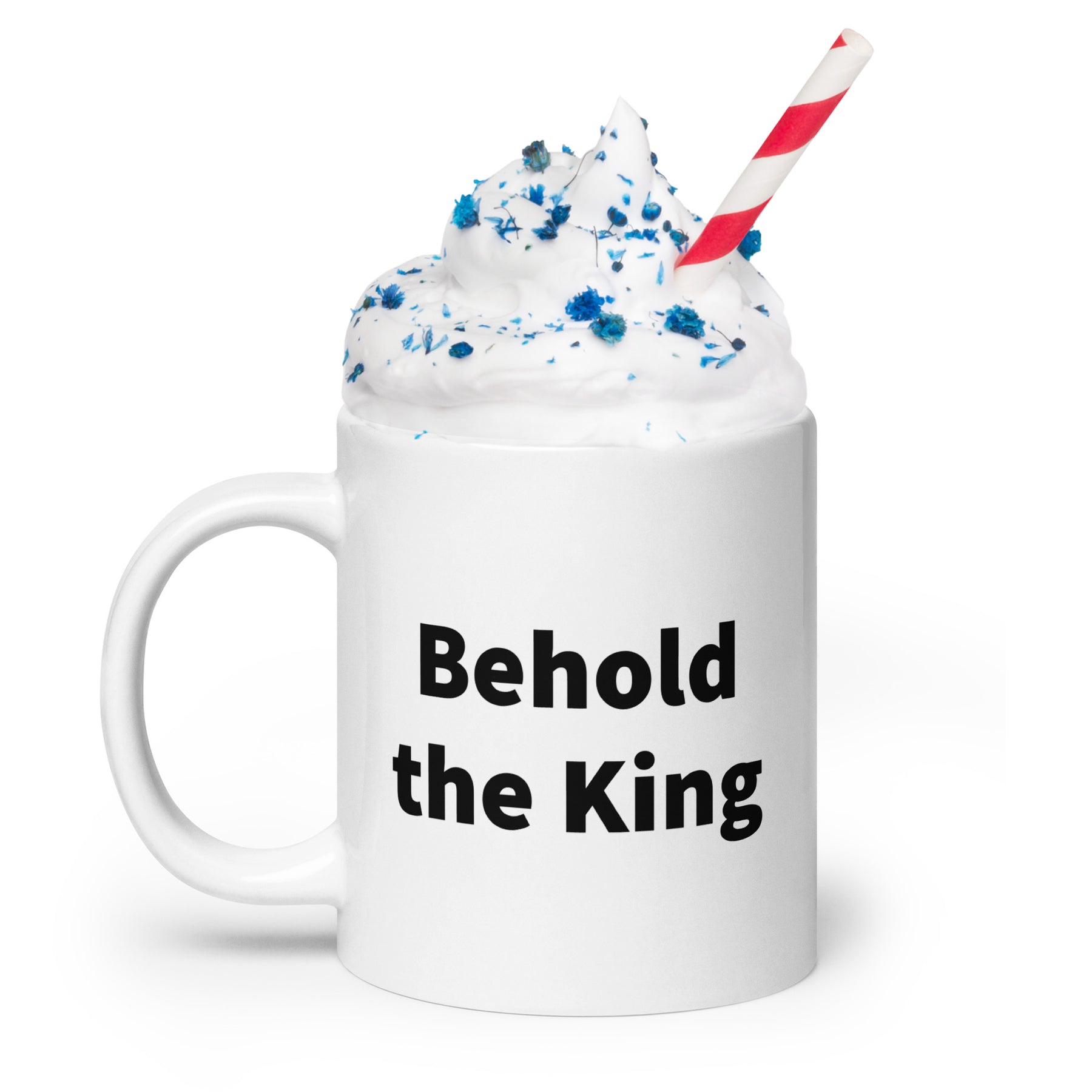 Paired with the commanding words **“Behold the King,”** this mug becomes a bold declaration of faith and honor. The phrase calls the heart to pause, to look upward, and to remember who reigns above all. Whether used during morning devotion or a quiet moment of reflection, this mug serves as a daily reminder of Christ’s glory, His victory, and His eternal kingship—worthy of praise, devotion, and awe.