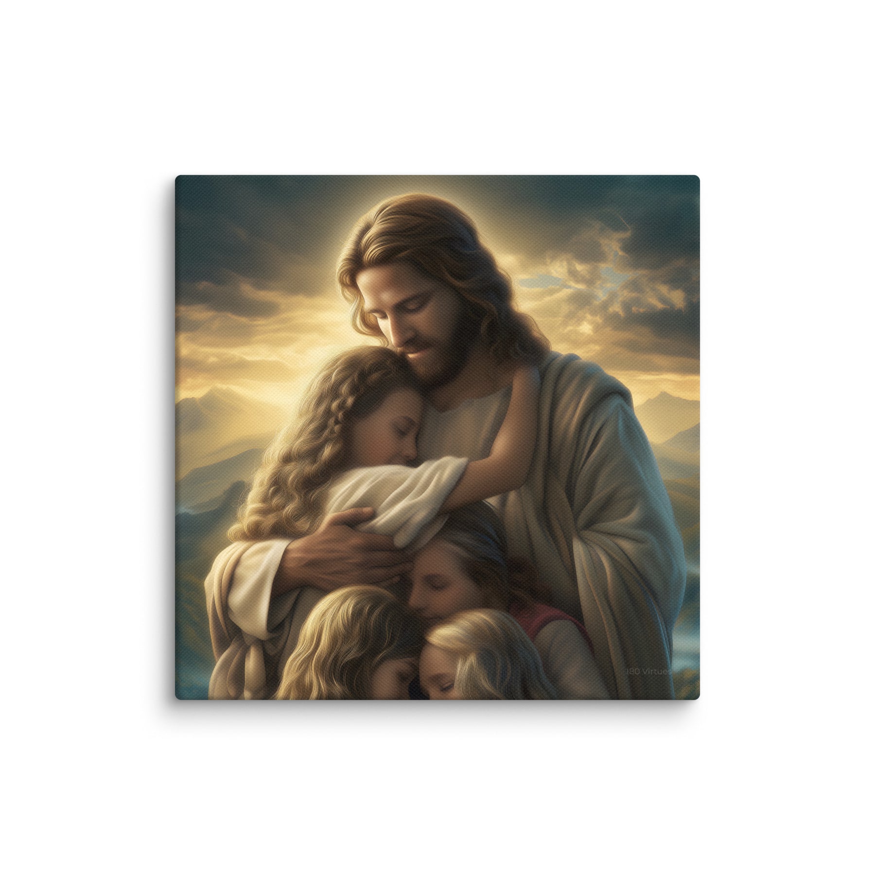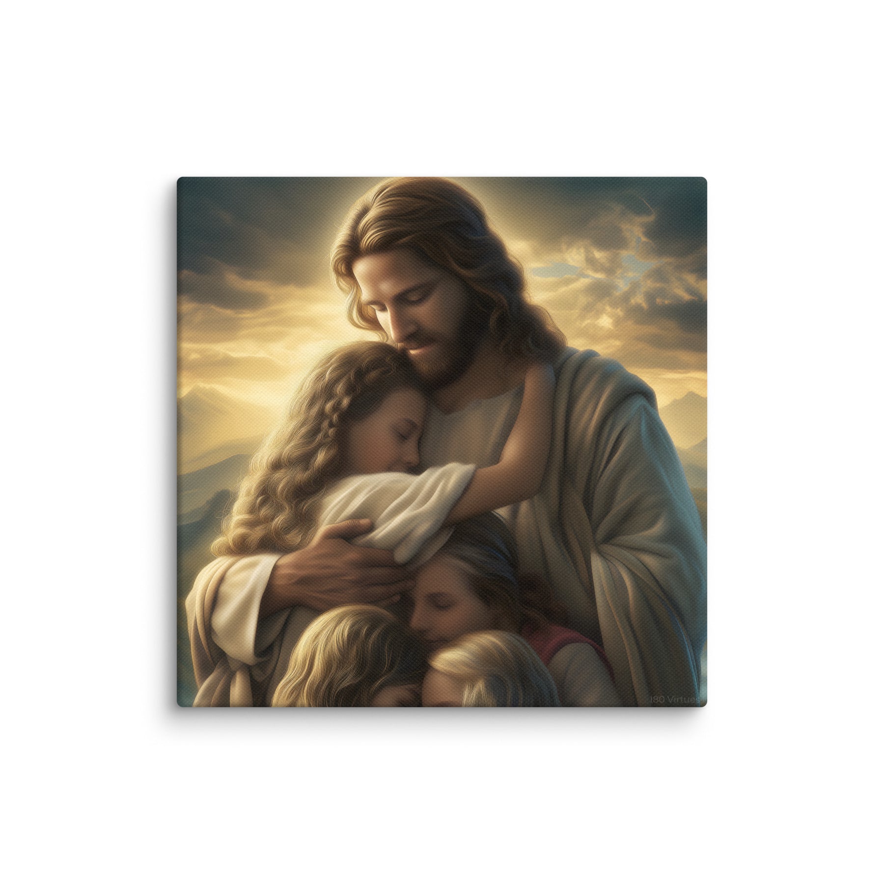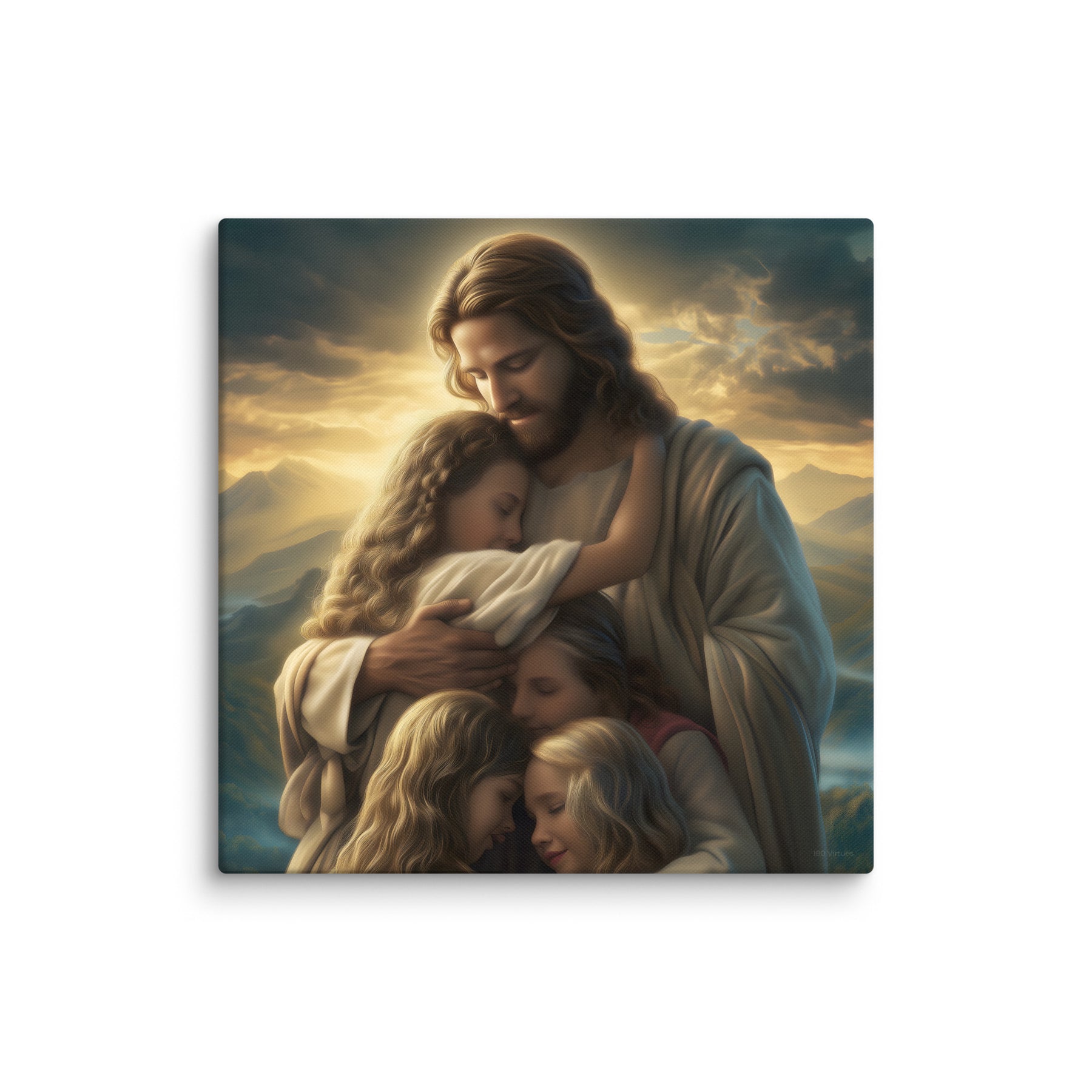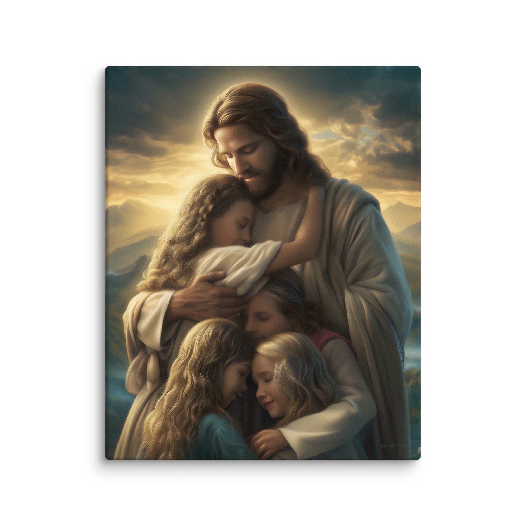 This artwork brings a sense of peace and emotional healing into any home or space. It reminds families, parents, and children alike that Jesus’ love is personal, protective, and ever near. Perfect for nurseries, bedrooms, family rooms, Christian schools, and church classrooms, this canvas fills the room with hope and the sweet message that no matter where we are or what we face, we are forever held in His loving arms.