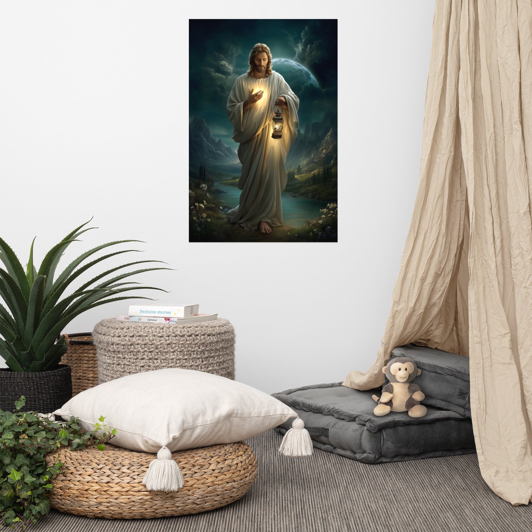 This piece beautifully reflects Christ as the One who leads with love, not force—offering light where there is uncertainty and hope where the path feels dim. Ideal for prayer rooms, bedrooms, offices, or as a deeply meaningful Christian gift, this artwork serves as a daily reminder that no darkness is too great for His light. More than a visual centerpiece, it invites the viewer to walk forward in faith, trusting the gentle guidance of the Savior who promises to be with us every step of the way.