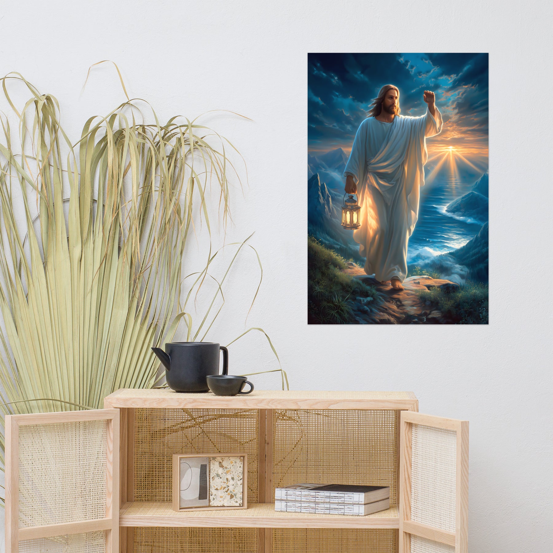This powerful image captures Christ as the One who leads through uncertainty with unwavering compassion and strength. Perfect for prayer spaces, living rooms, offices, or as a meaningful Christian gift, this artwork serves as a daily reminder that no path is too difficult when walked in faith. More than décor, it is an invitation to trust the Light that goes before us—guiding hearts, steadying souls, and offering peace even when the journey feels steep, shadowed, or unknown.