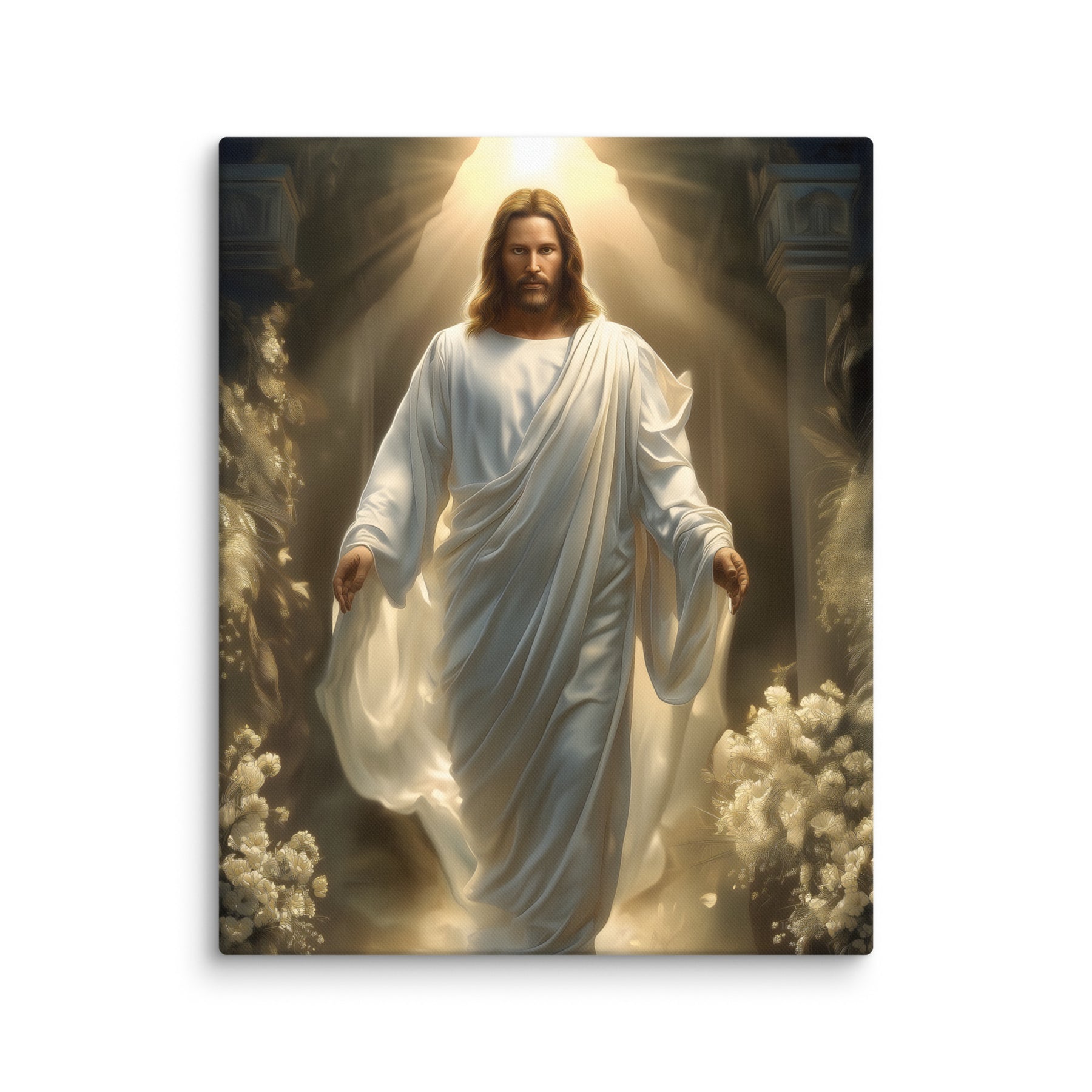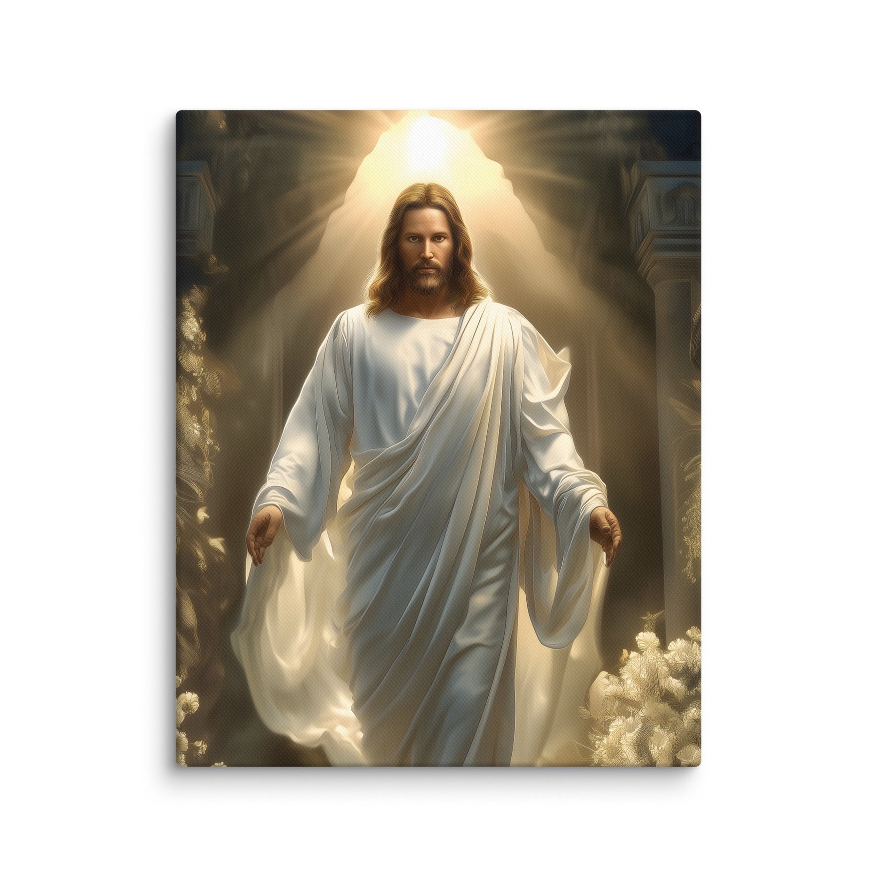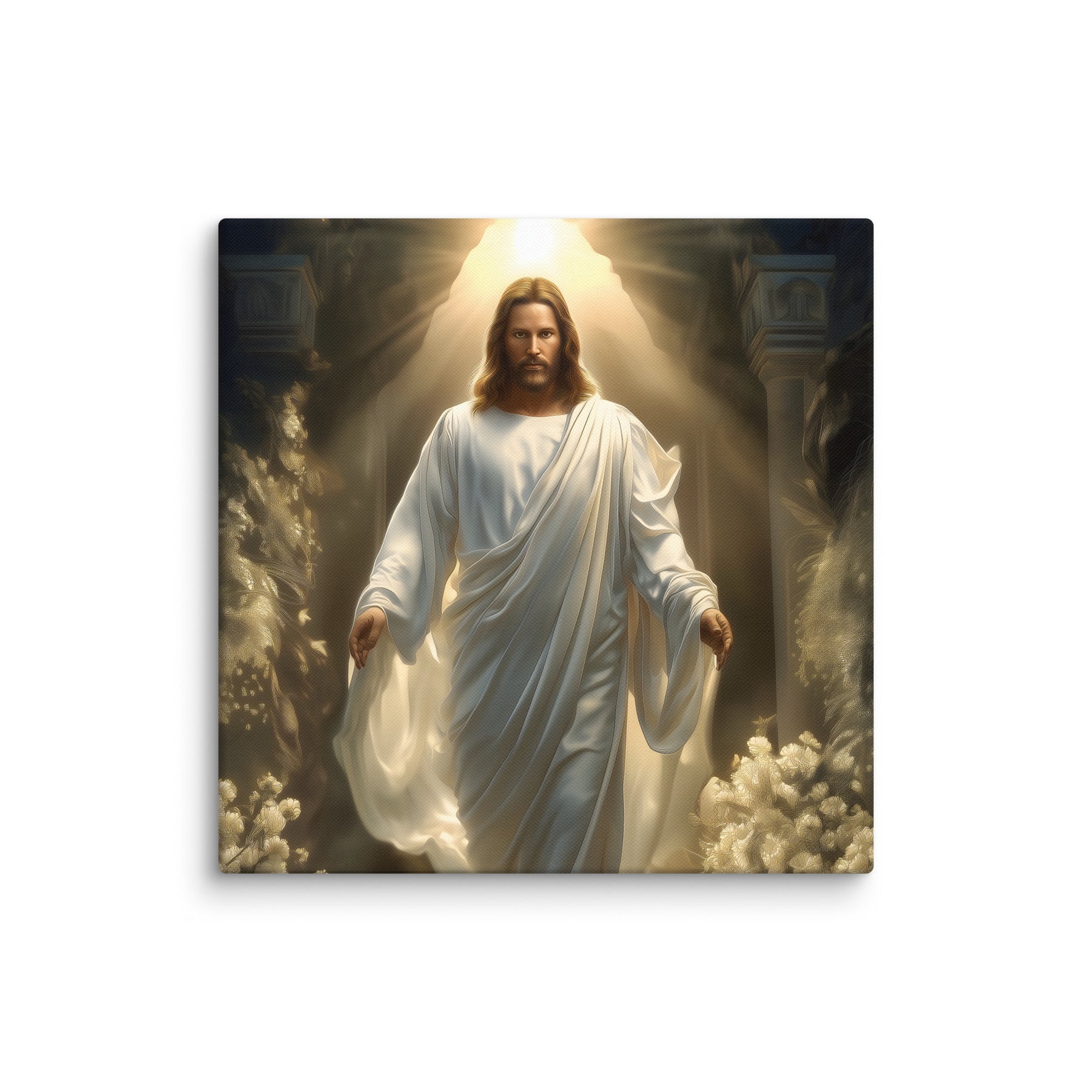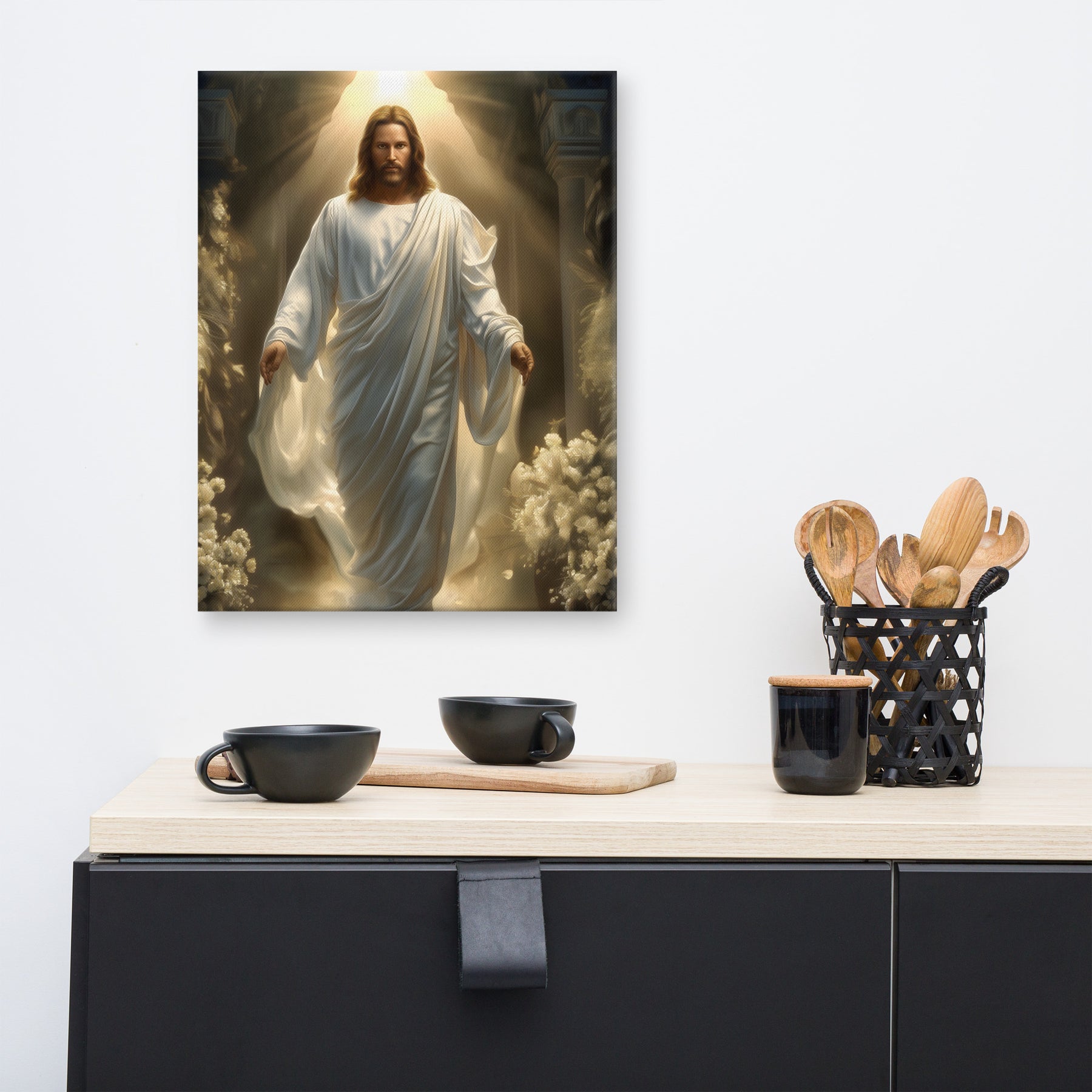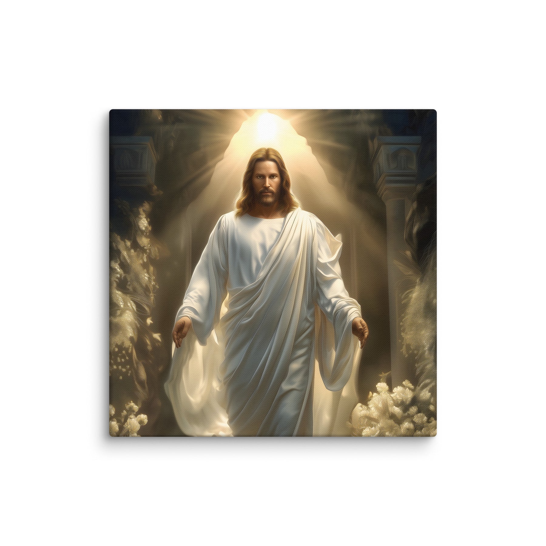This masterpiece captures the very heart of Christianity: hope restored, promises fulfilled, and a Savior who lives. Every detail—from the stone steps beneath His feet to the shimmering petals in the air—creates a breathtaking sense of awe and reverence. Perfect for Christian homes, church foyers, sanctuaries, prayer rooms, and Easter displays, this canvas transforms any space into a reminder of Christ’s living presence and everlasting grace.