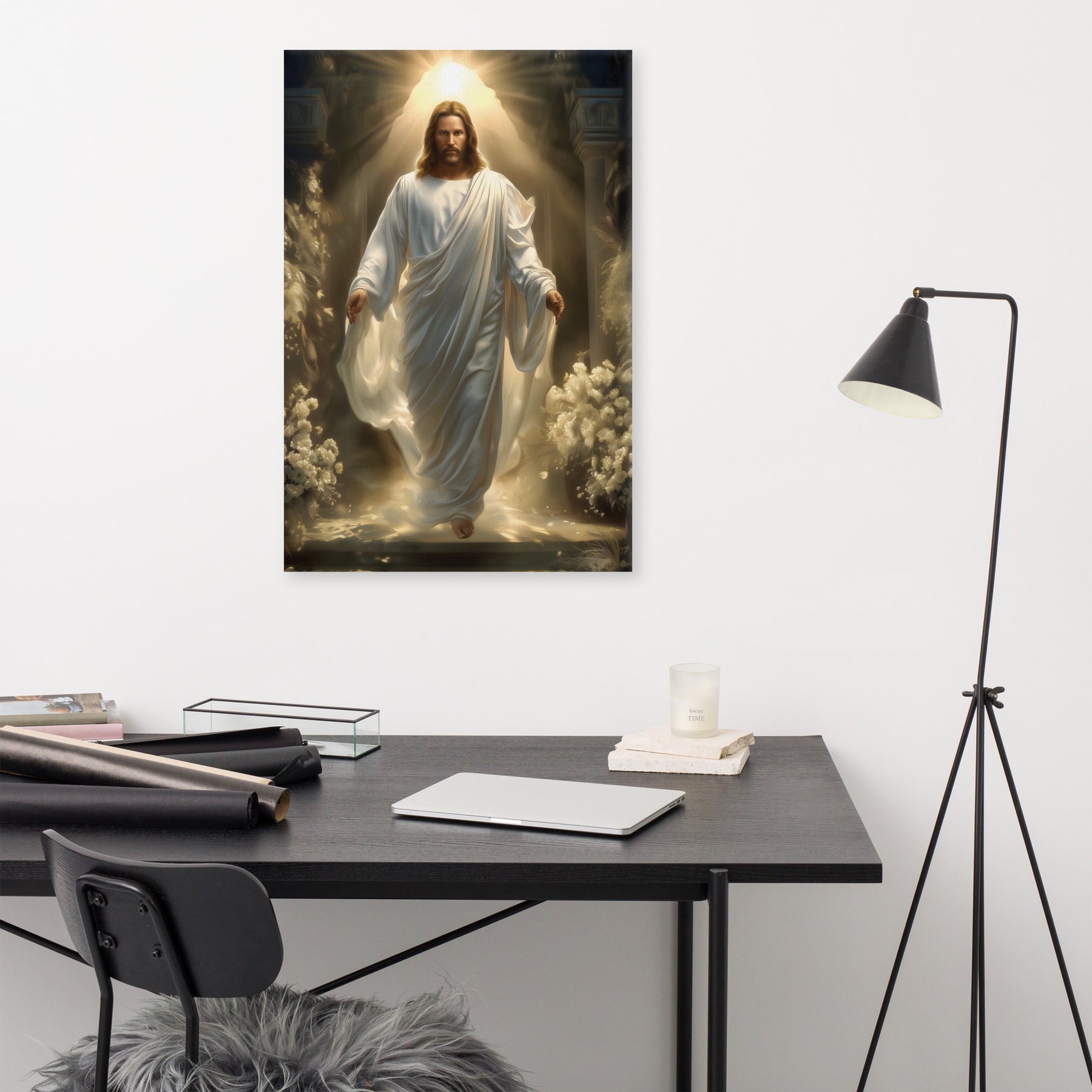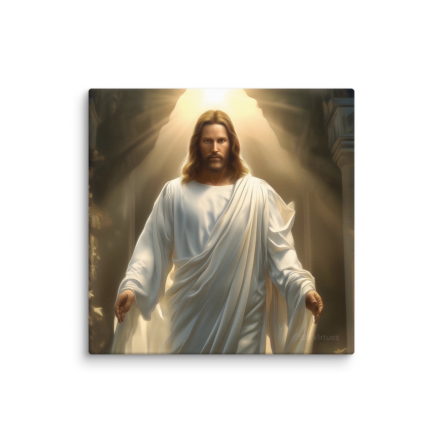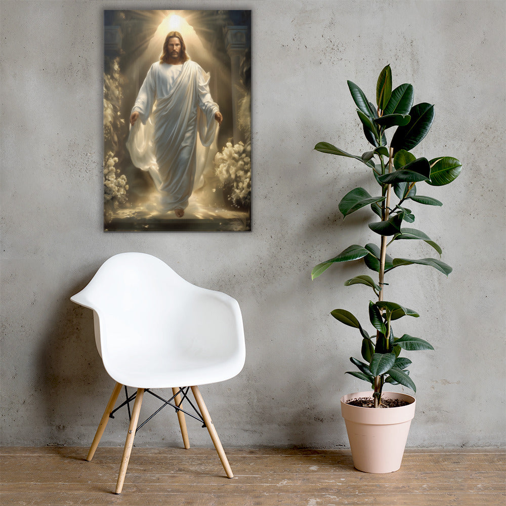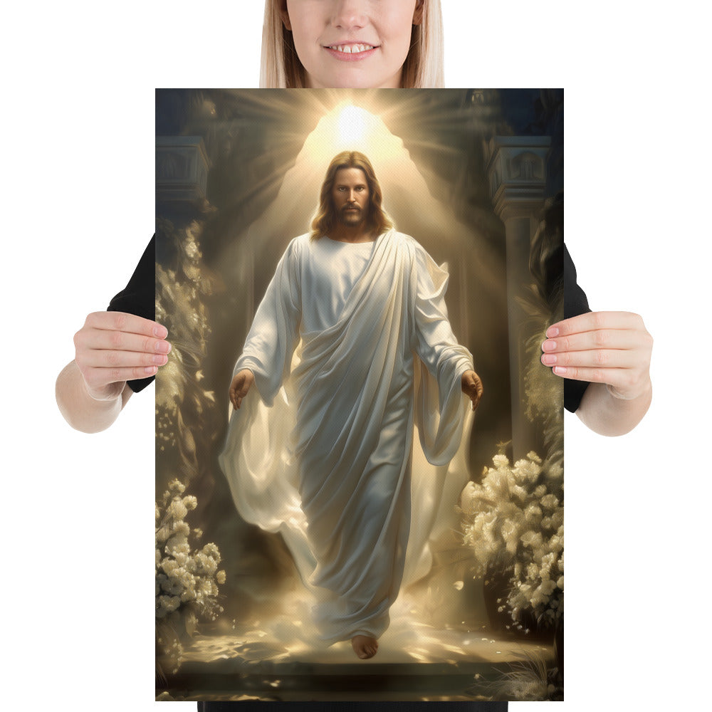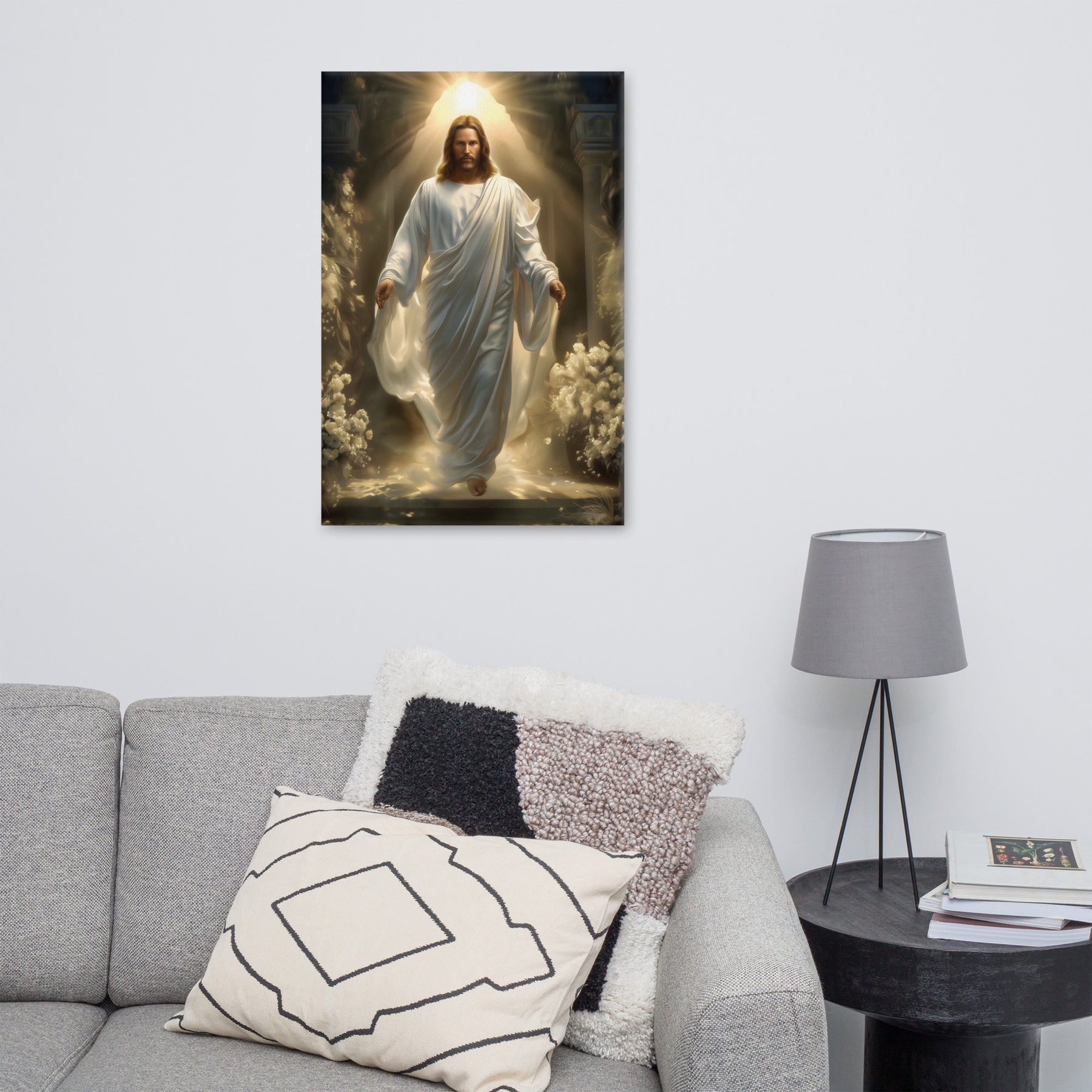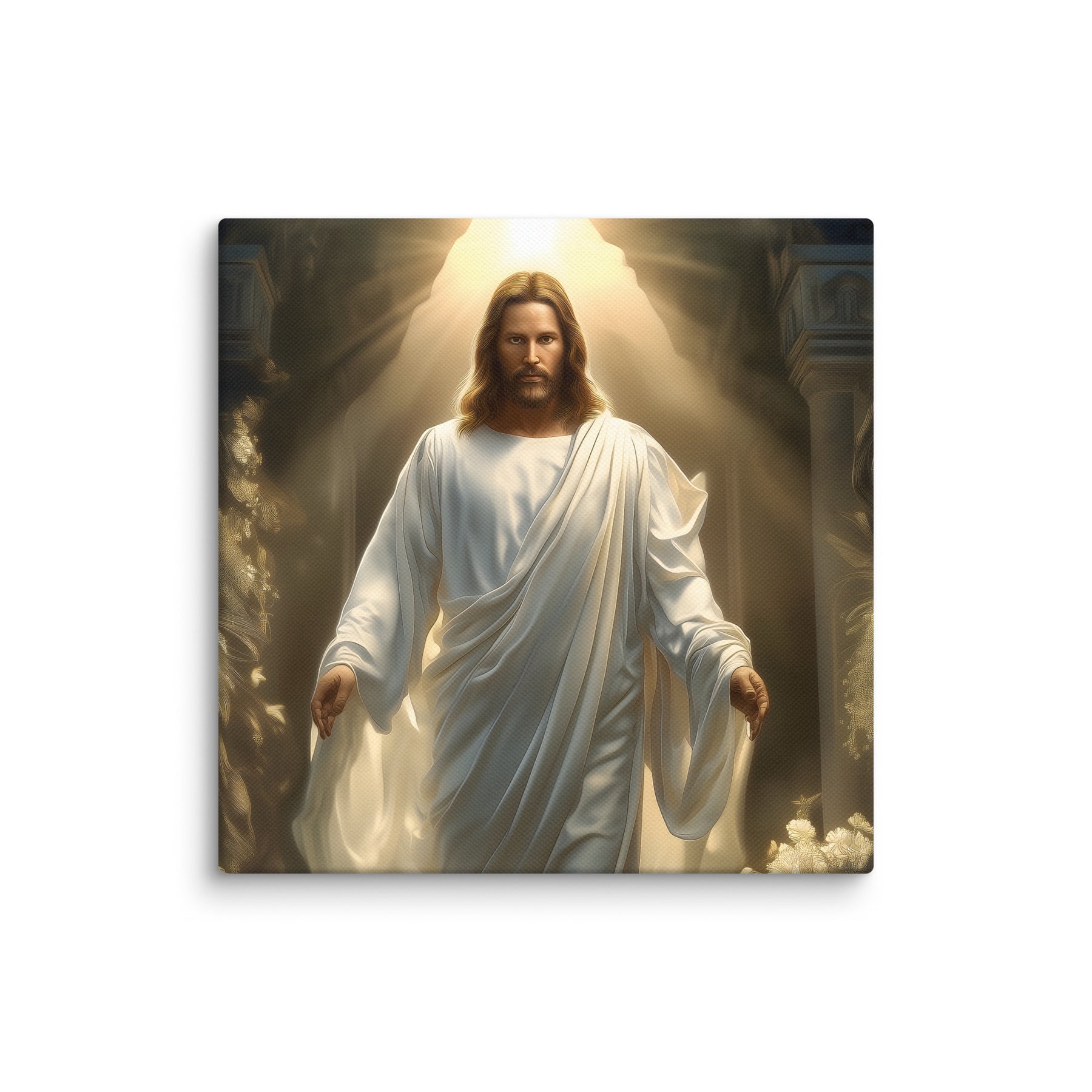 This masterpiece captures the very heart of Christianity: hope restored, promises fulfilled, and a Savior who lives. Every detail—from the stone steps beneath His feet to the shimmering petals in the air—creates a breathtaking sense of awe and reverence. Perfect for Christian homes, church foyers, sanctuaries, prayer rooms, and Easter displays, this canvas transforms any space into a reminder of Christ’s living presence and everlasting grace.