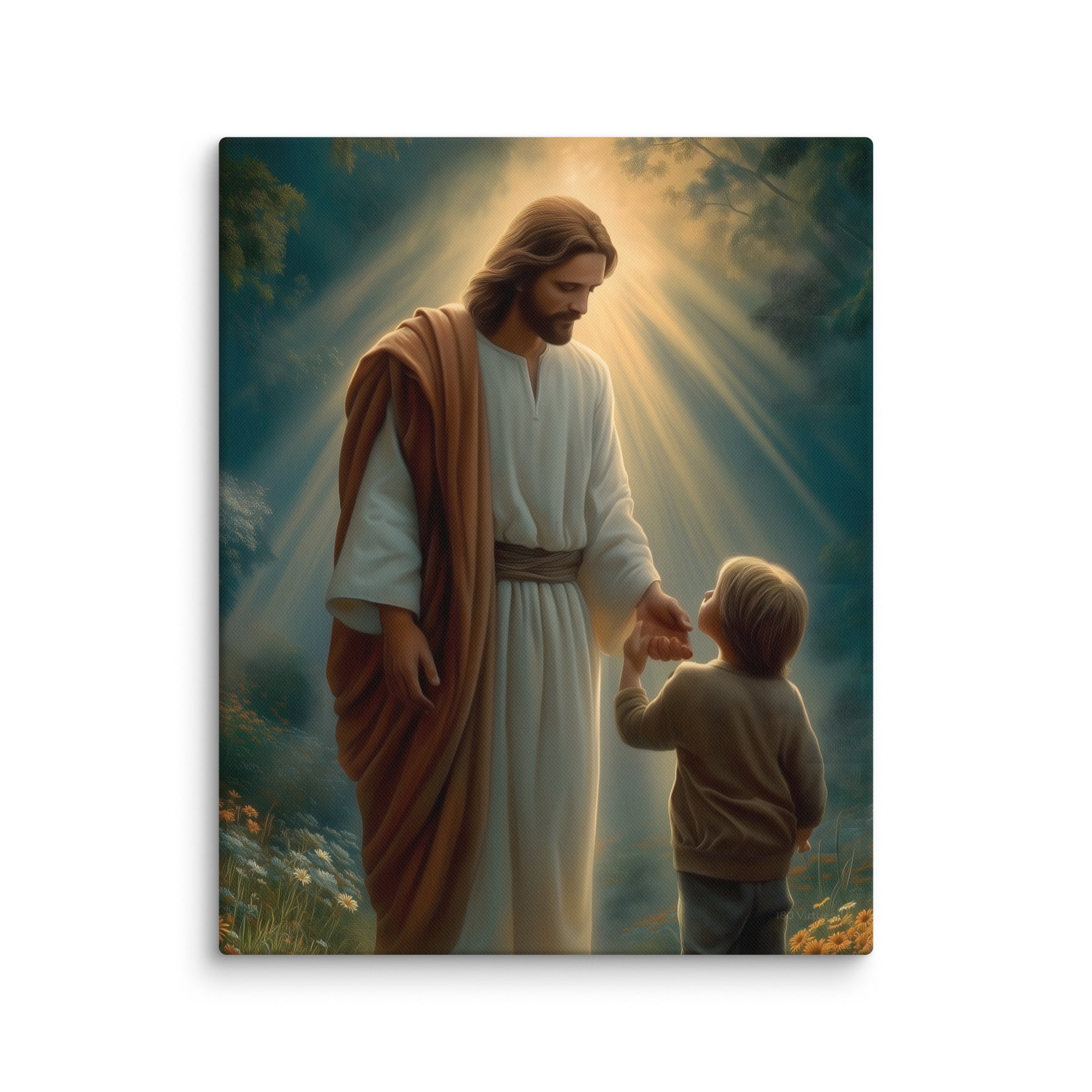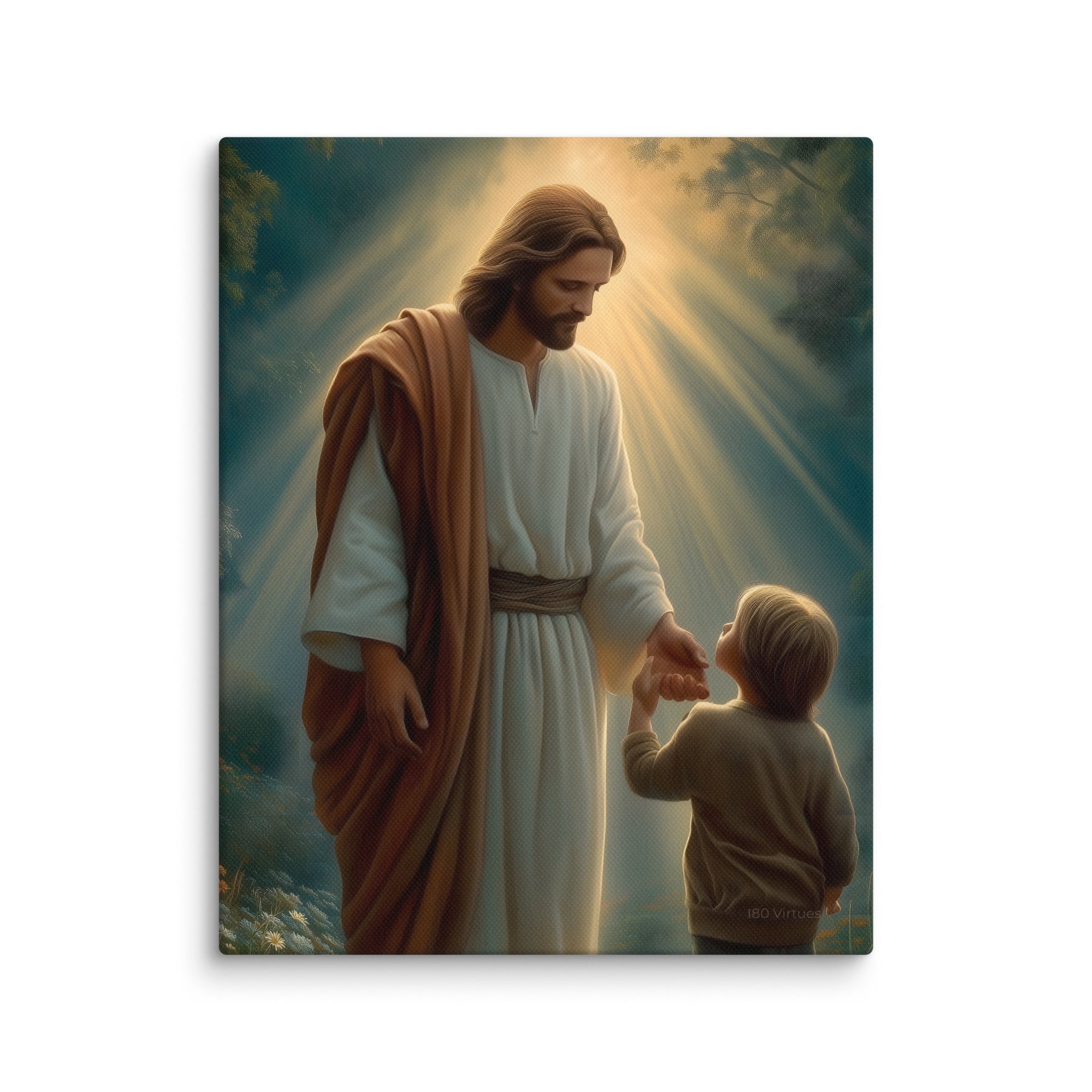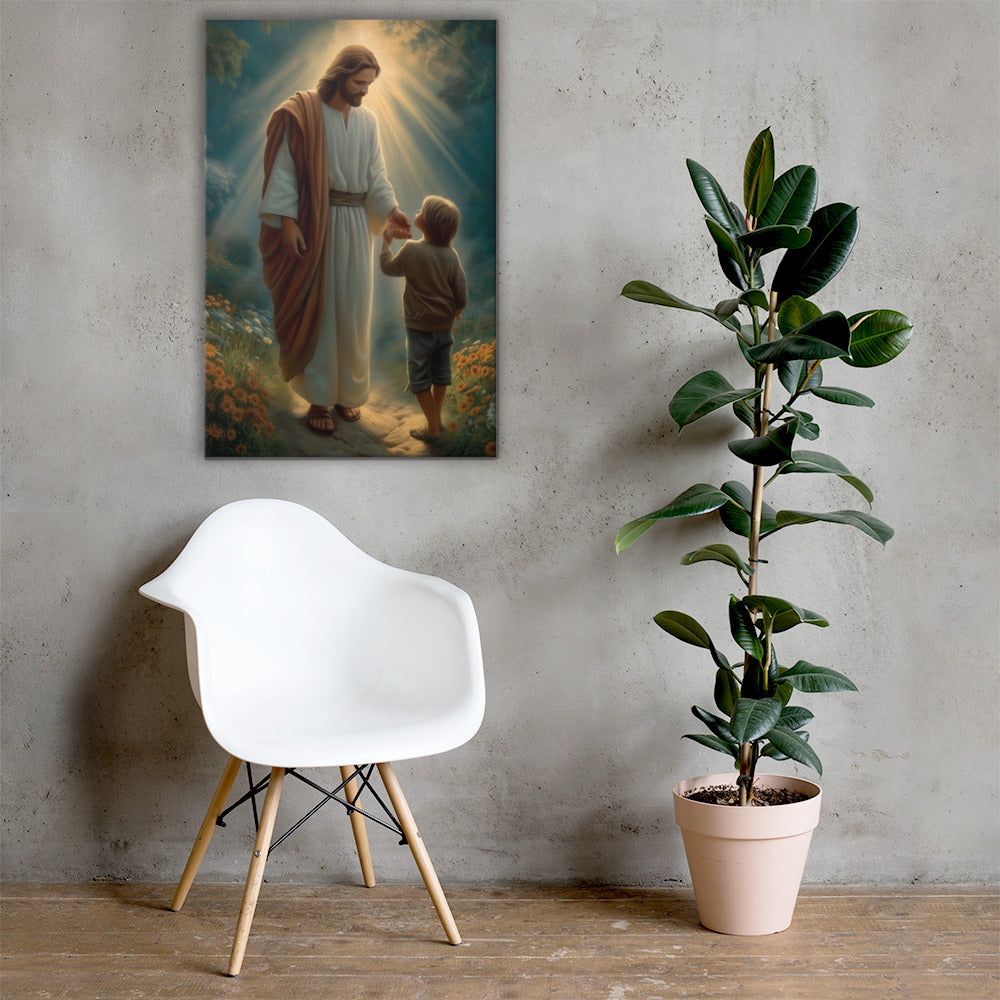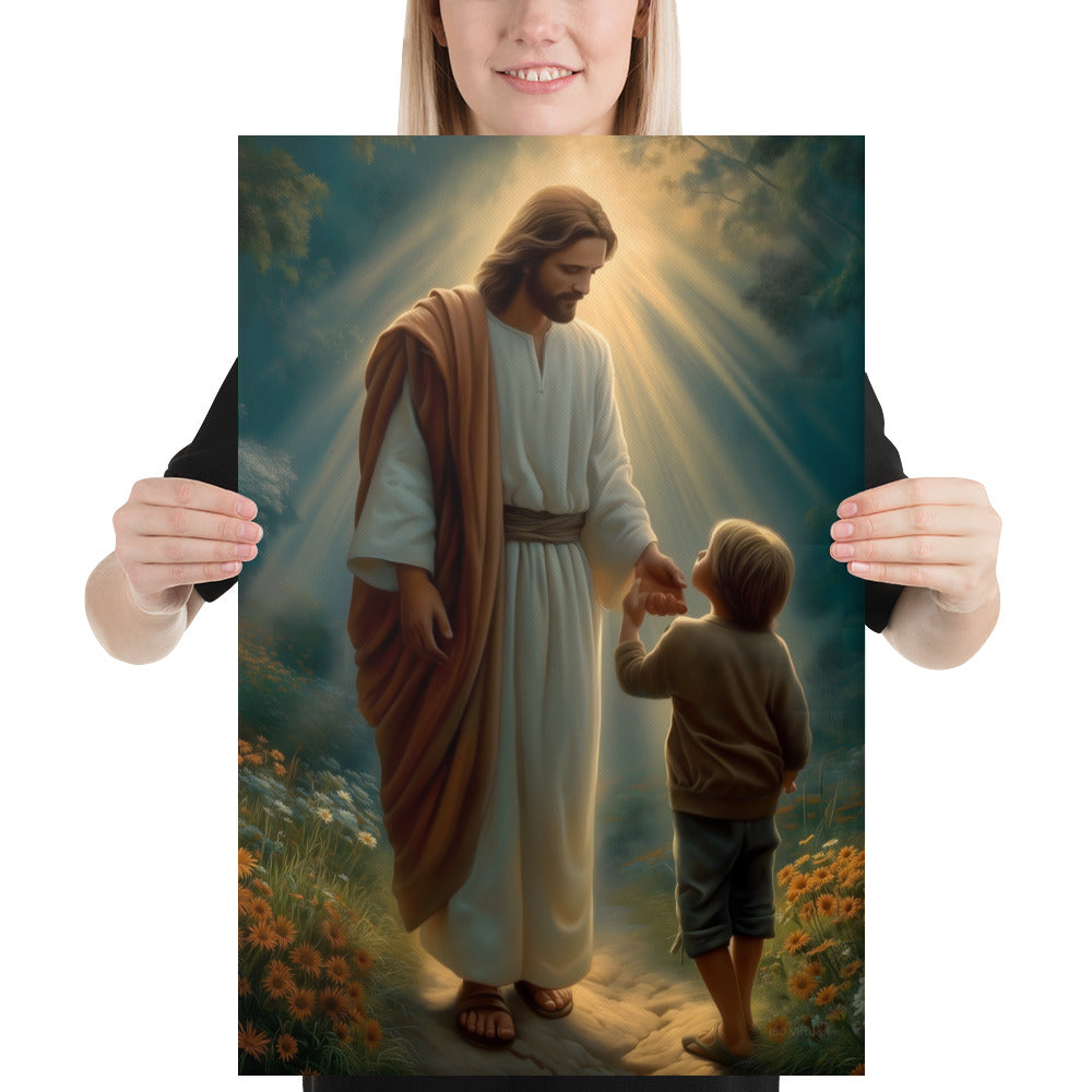 This artwork serves as a beautiful reminder that Jesus meets us where we are and guides us patiently, never forcing, always inviting. It speaks to the promise that when we place our hand in His, we are never alone, never lost, and never beyond His care. A meaningful piece for homes, nurseries, classrooms, or any space that celebrates faith, trust, and the gentle leadership of Christ.