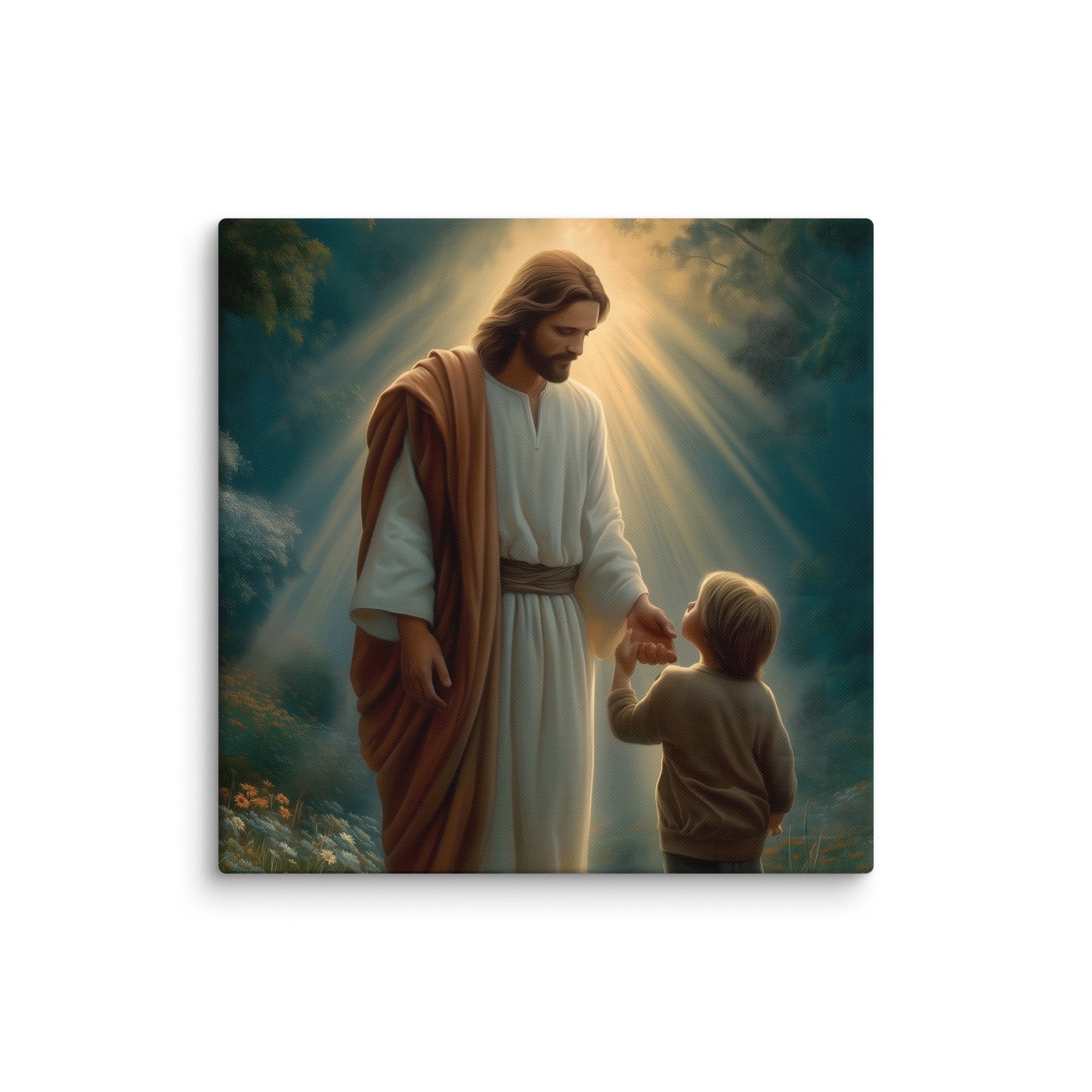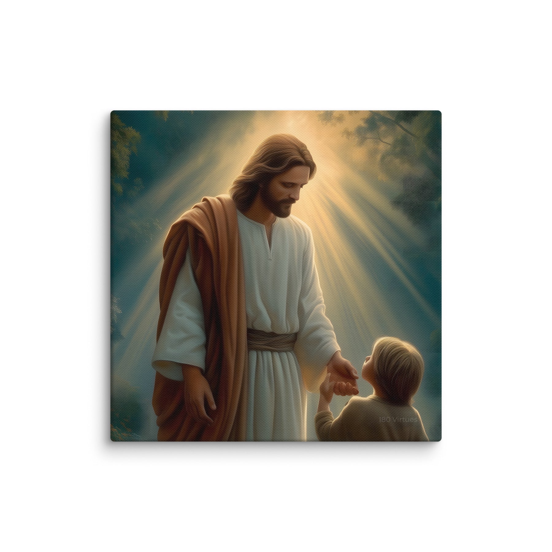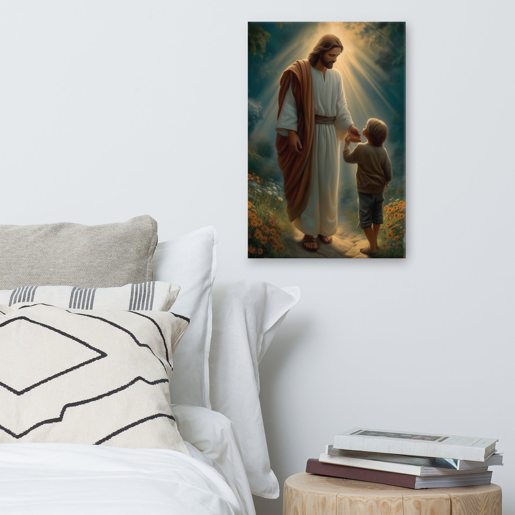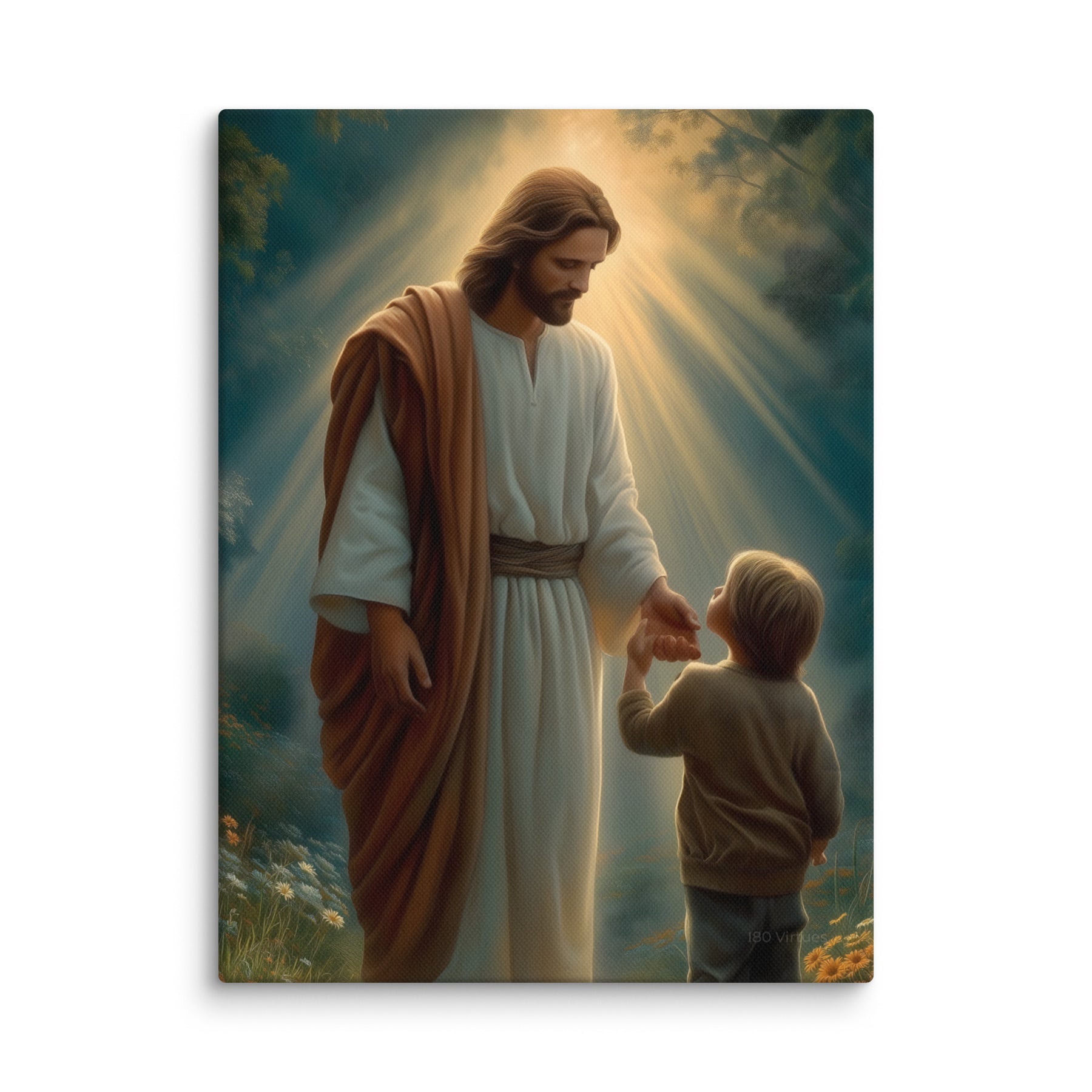 This artwork serves as a beautiful reminder that Jesus meets us where we are and guides us patiently, never forcing, always inviting. It speaks to the promise that when we place our hand in His, we are never alone, never lost, and never beyond His care. A meaningful piece for homes, nurseries, classrooms, or any space that celebrates faith, trust, and the gentle leadership of Christ.