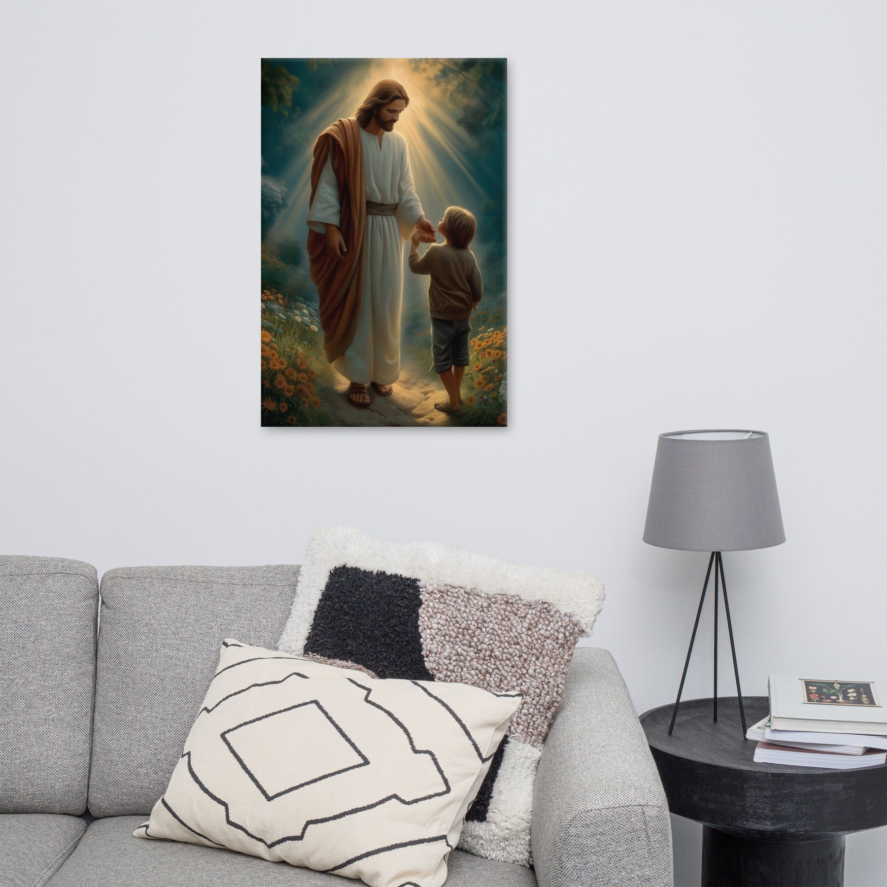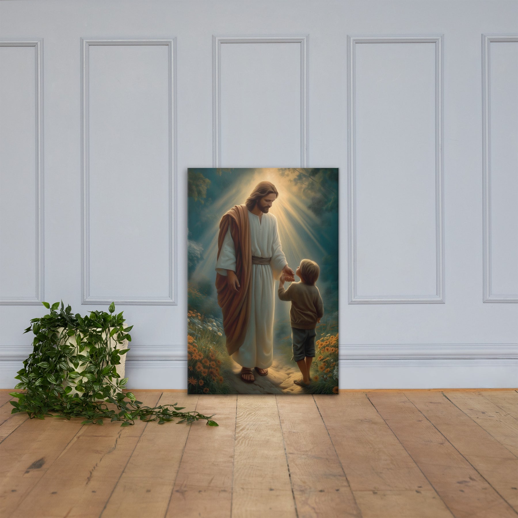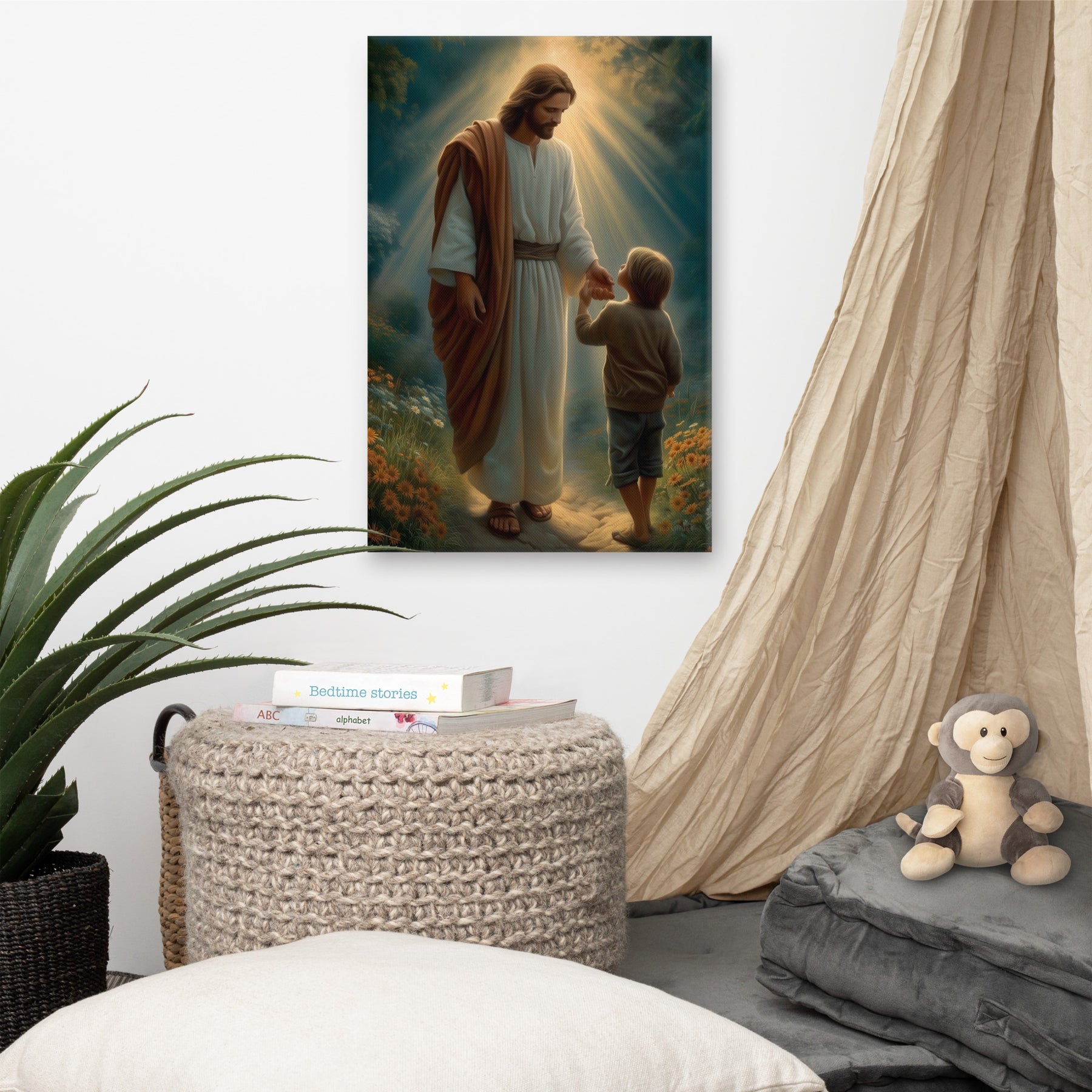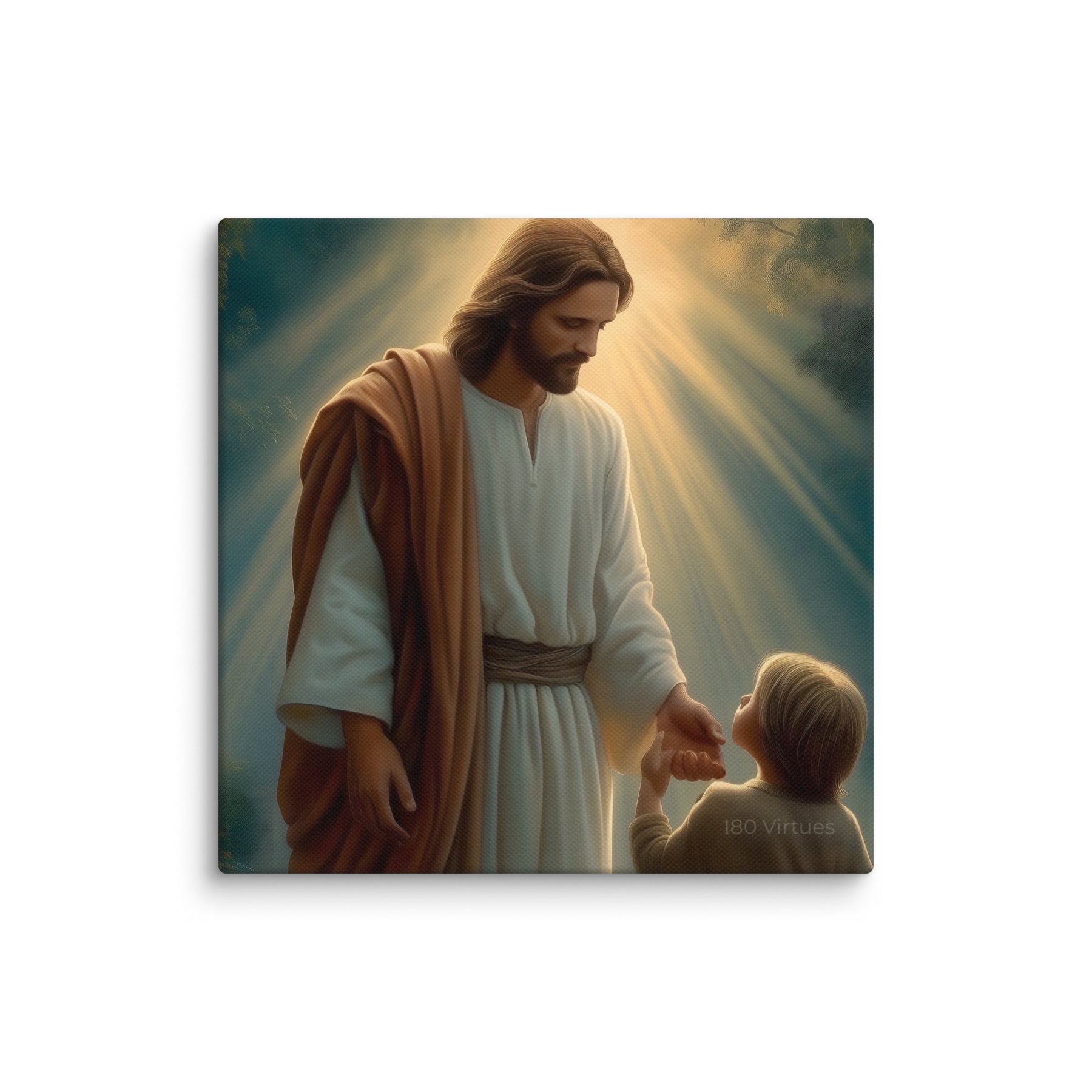 This artwork serves as a beautiful reminder that Jesus meets us where we are and guides us patiently, never forcing, always inviting. It speaks to the promise that when we place our hand in His, we are never alone, never lost, and never beyond His care. A meaningful piece for homes, nurseries, classrooms, or any space that celebrates faith, trust, and the gentle leadership of Christ.